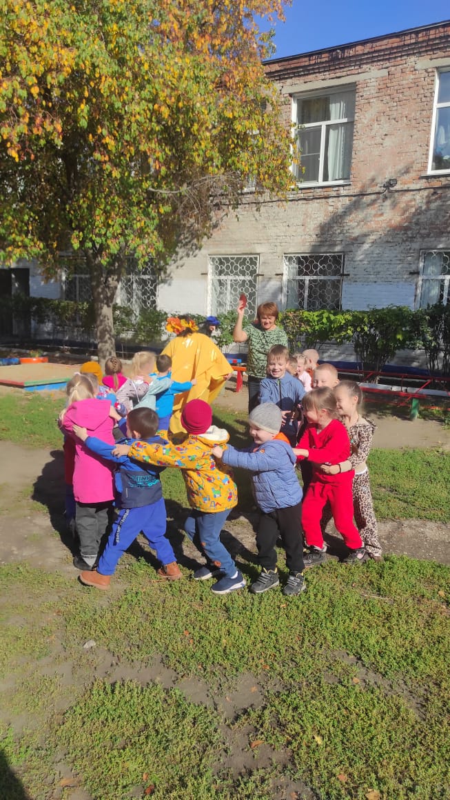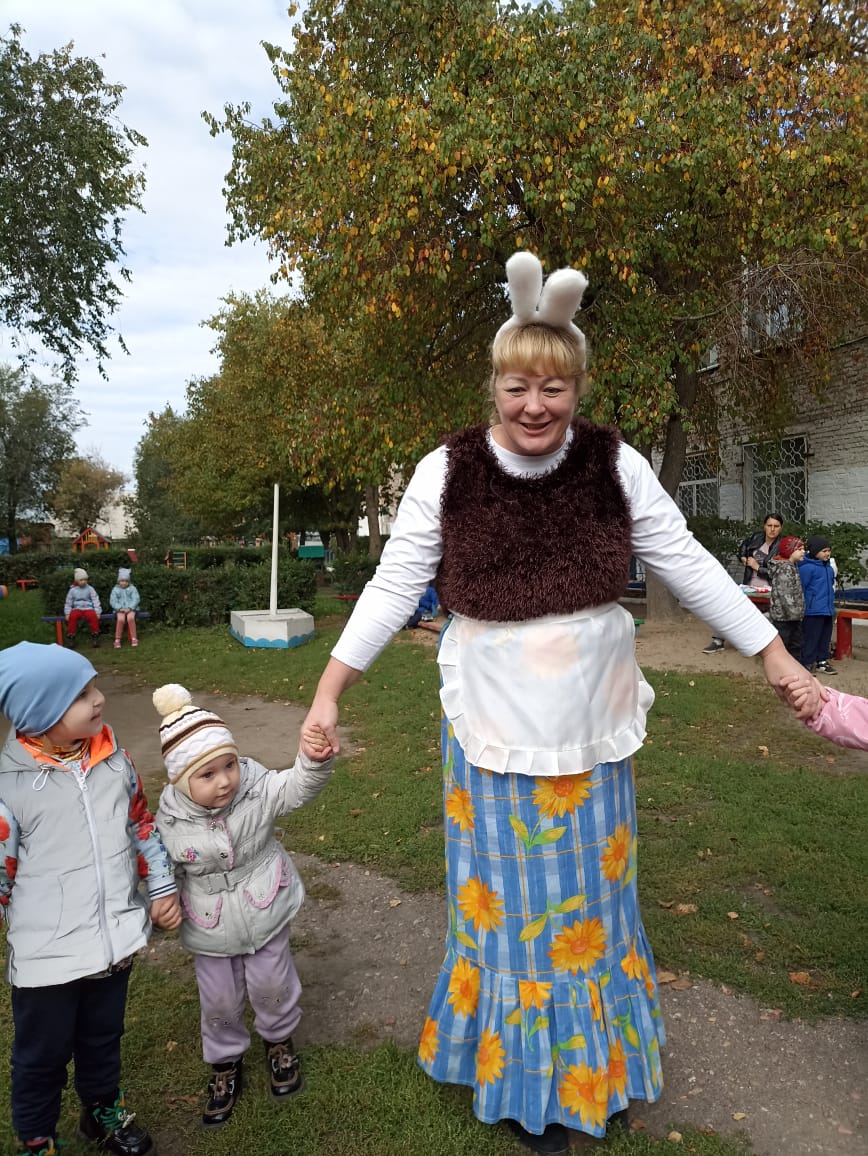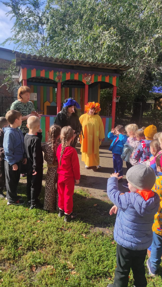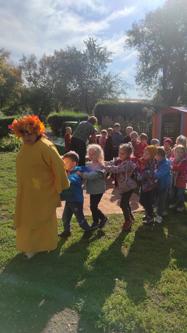 Традиционно, каждый год, в нашем детском саду проходят осенние праздники. В этом учебном году у детей всех возрастных групп они проходили на улице. Погода была ясная, солнечная, на прогулочных участках царила теплая, доброжелательная атмосфера. В гости к ребятам приходили и Баба Яга, и Матушка-Зайчиха, и сама Осень… Дети с нетерпением ждали встречи с Осенью, вместе они отправились в увлекательное путешествие в осенний лес и на огород. На празднике дети пели, танцевали, играли в веселые игры, отгадывали осенние загадки, рассказывали стихи, участвовали в сценке. А самым ярким и запоминающимся эпизодом стал сюрпризный момент – корзина с яблоками от Осени для всех ребят! Праздник в детском саду – это всегда удивительные чудеса, волшебные краски, звонкий смех воспитанников, море улыбок и веселья. Вот почему праздник Осени в детском саду является одним из самых любимых у нашей детворы. Мероприятие было веселым, ярким, увлекательным. Воспитанники получили много позитивных эмоций.